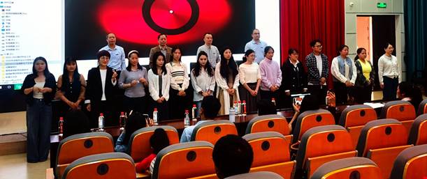 最后,唐彰新及继续教育学院领导向与会新生代表赠予校徽,在《播种阳光》的歌声中传递玉师人的责任与使命。