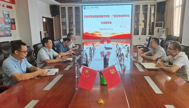 6月26日下午,继续教育学院林统成院长带领副院长黄潮、培训管理科科长许开诚到玉林技师学院进行调研交流。玉林技师学院张校长热情接待了林院长一行,并召集办公室、教务处及培训部负责人参加座谈。