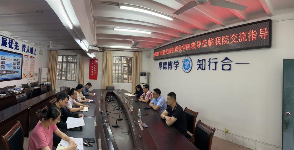 11月1日,广西蓝天航空职业学院陈俊伟校长一行四人到我院进行成人高等教育和网络助学工作调研,并在会议室进行了座谈交流。
