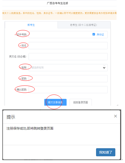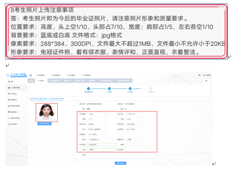 注意:①.考生来源:选择“社会考生”,系统自动匹配“主考院校”,不用理会,待我校新生备案成功,系统会将考生来源变回“助学考生”,“主考院校”变回“玉林师范学院”;②.考前学历选择“专科毕业”;③.专业选择是拟报考的自考本科专业;④.照片要求: